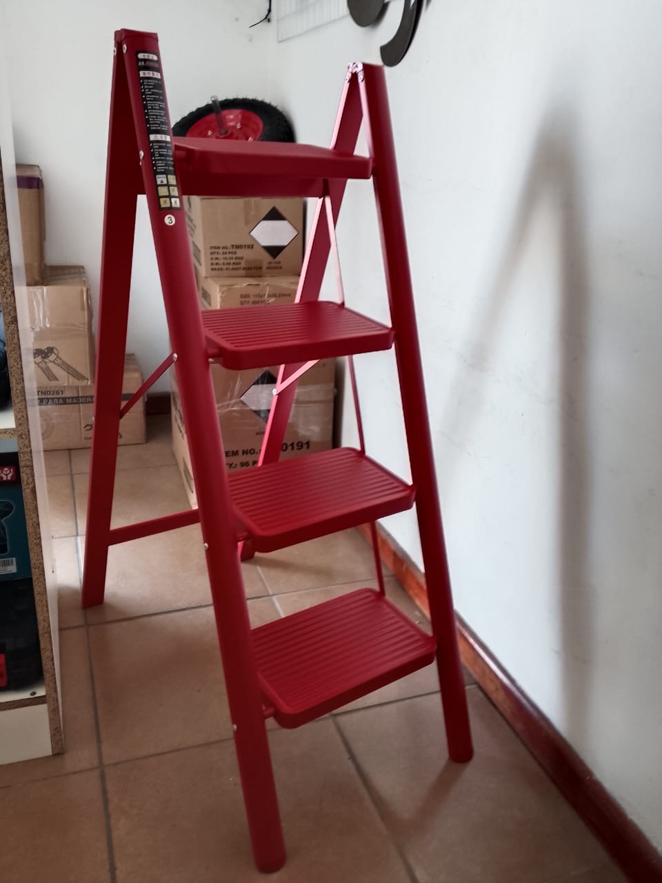 Escala tijera metálica,patas de goma antideslizante.